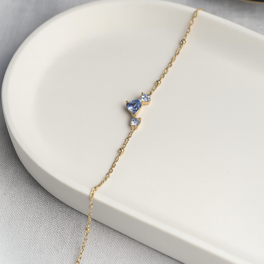 Let your wrist fall in love with every sparkle. The Amour Glow Bracelet features a radiant lavender heart stone flanked by dainty crystal accents, all set in durable gold-plated hardware. With its hypoallergenic and anti-tarnish build, this piece is perfect for everyday elegance or dreamy date nights. Lightweight, romantic, and designed to glow — it’s love at first clasp.