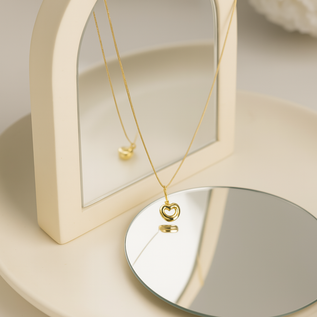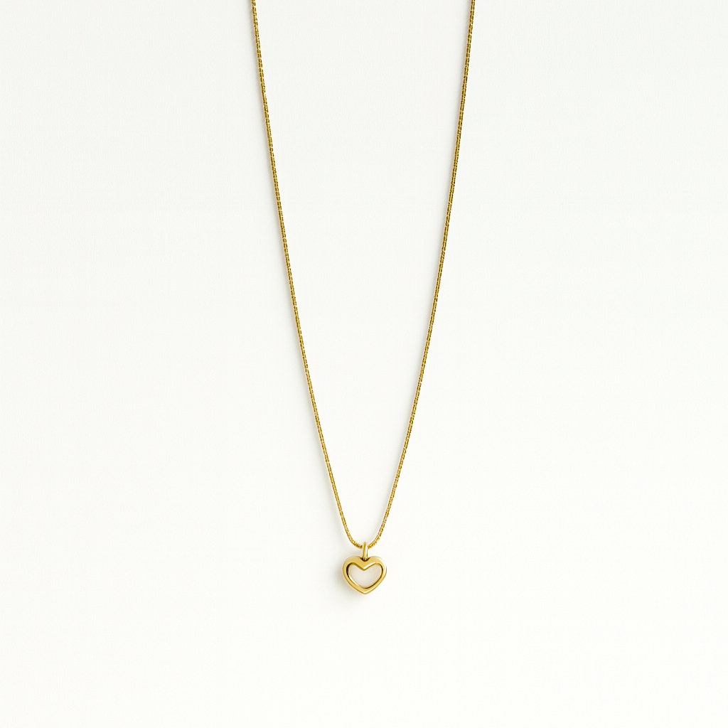 Add a radiant spark to your everyday style with the GlowHeart Necklace, a delicate open-heart pendant finished in luminous anti-tarnish gold plating. Designed for effortless elegance, this minimalist heart charm reflects your inner glow and timeless love.