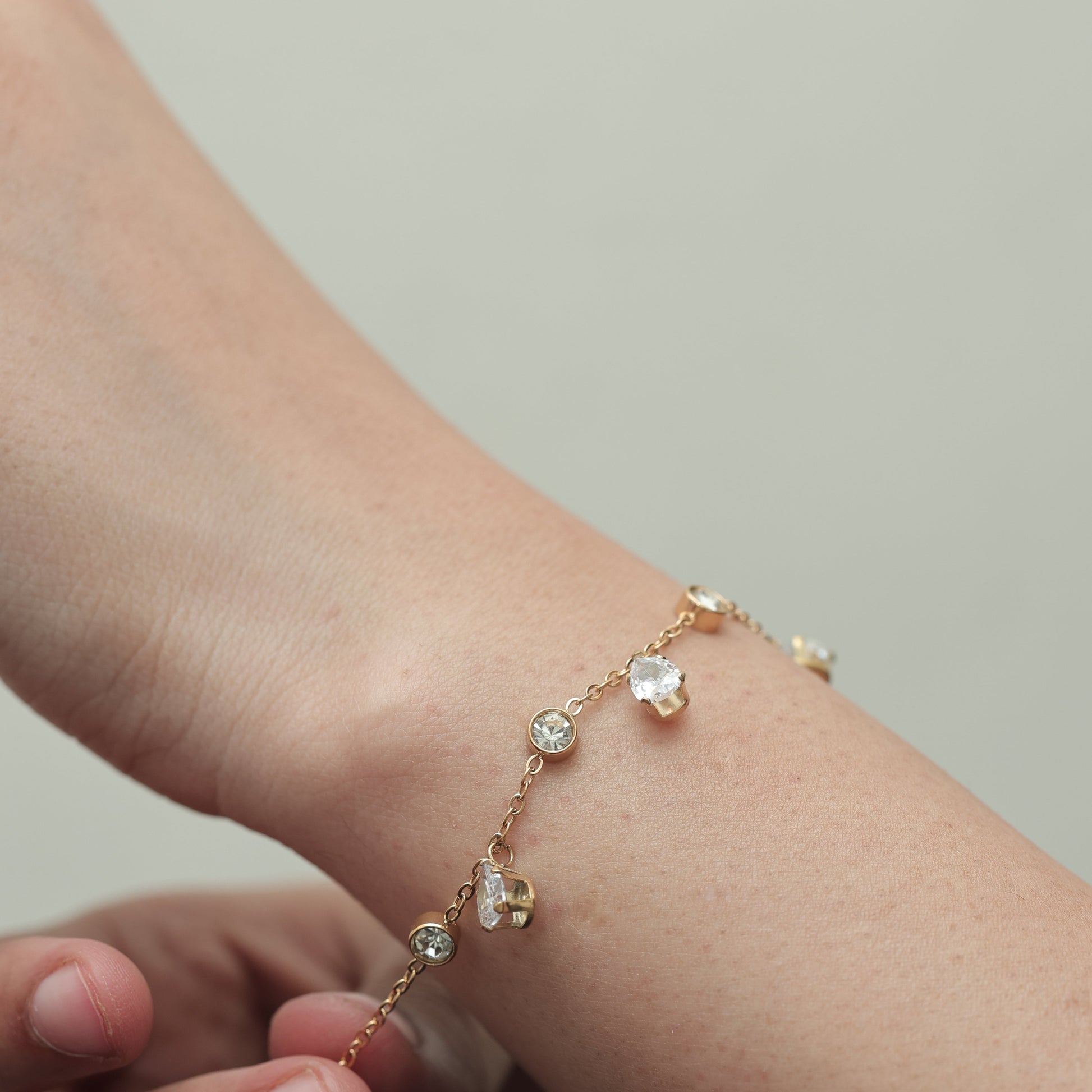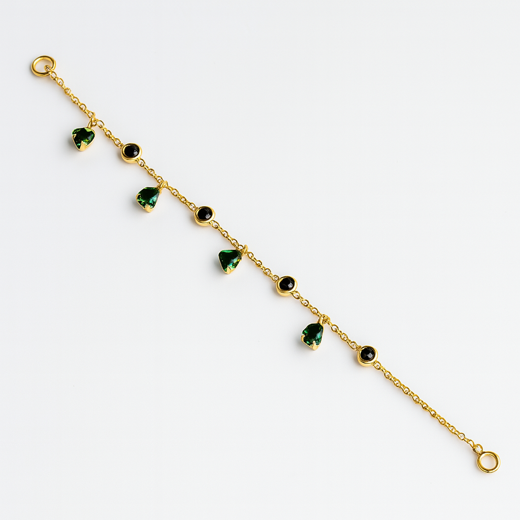 Mysterious yet playful, the Midnight Mischief Charm Bracelet brings out your bold side with a flick of your wrist. Featuring sleek green enamel discs and striking emerald green teardrop charms, each accent pops against the rich warmth of gold plating. Lightweight, hypoallergenic, and anti-tarnish, this bracelet is designed to glow without fading and keep your style effortlessly chic all day.
